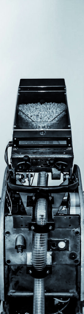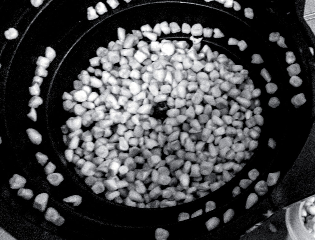 7 Litres de dents vont progressivement remplir un bol trieur industriel spiralé conçu initialement pour la sélection optimale de pièces industrielles. Les entrées et sorties des dents s’organisent de façon synchrone avec les données numériques provenant d’un flux RSS dédié au comptage statistique des naissances et les morts de part et d’autre du monde, de notre monde.